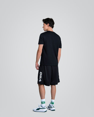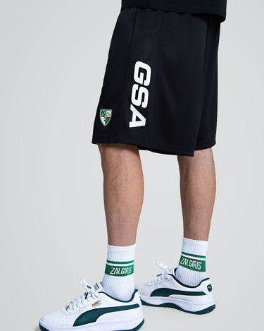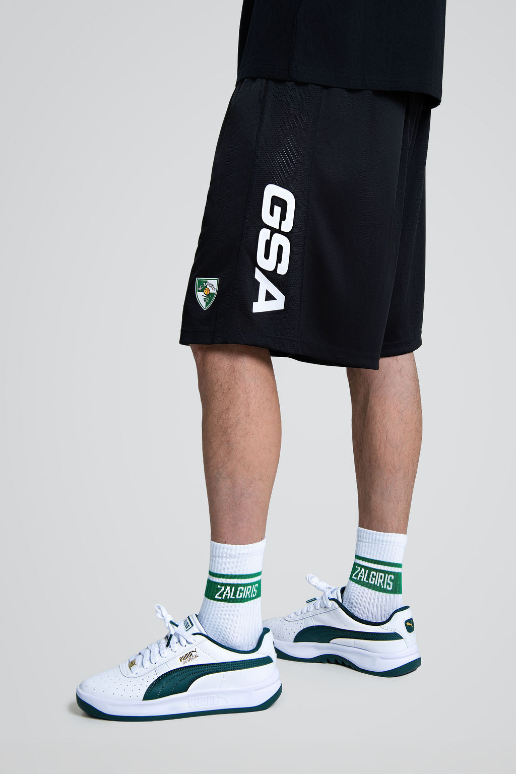 Juodi treniruočių šortai, dekoruoti „Žalgirio“ skydu bei GSA dizaino detalėmis. GSAAERO+ linijos produktai pagaminti iš perforuotų ir lengvų audinių. Tai užtikrina sklandų oro pralaidumą ir suteikia patogų sausumo pojūtį, drabužiai nelimpa prie odos. Sudėtis:
