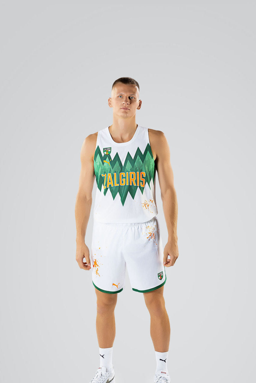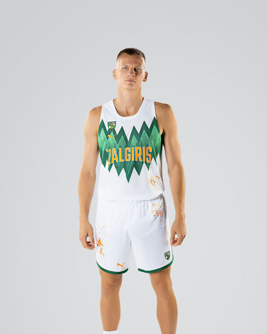 Parduodama apranga nėra analogiška nuotraukose vaizduojamų žaidėjų marškinėliams. Ženklas „Žalgiris“ yra aukščiau bei oranžinės spalvos, nėra Eurolygos logotipo bei žaidėjo pavardės ir/ar skaičiaus.