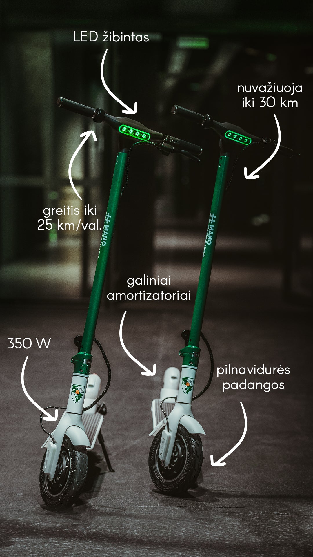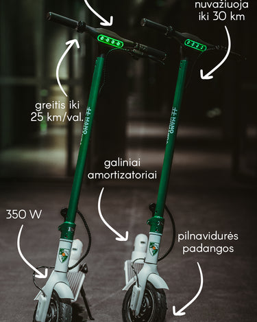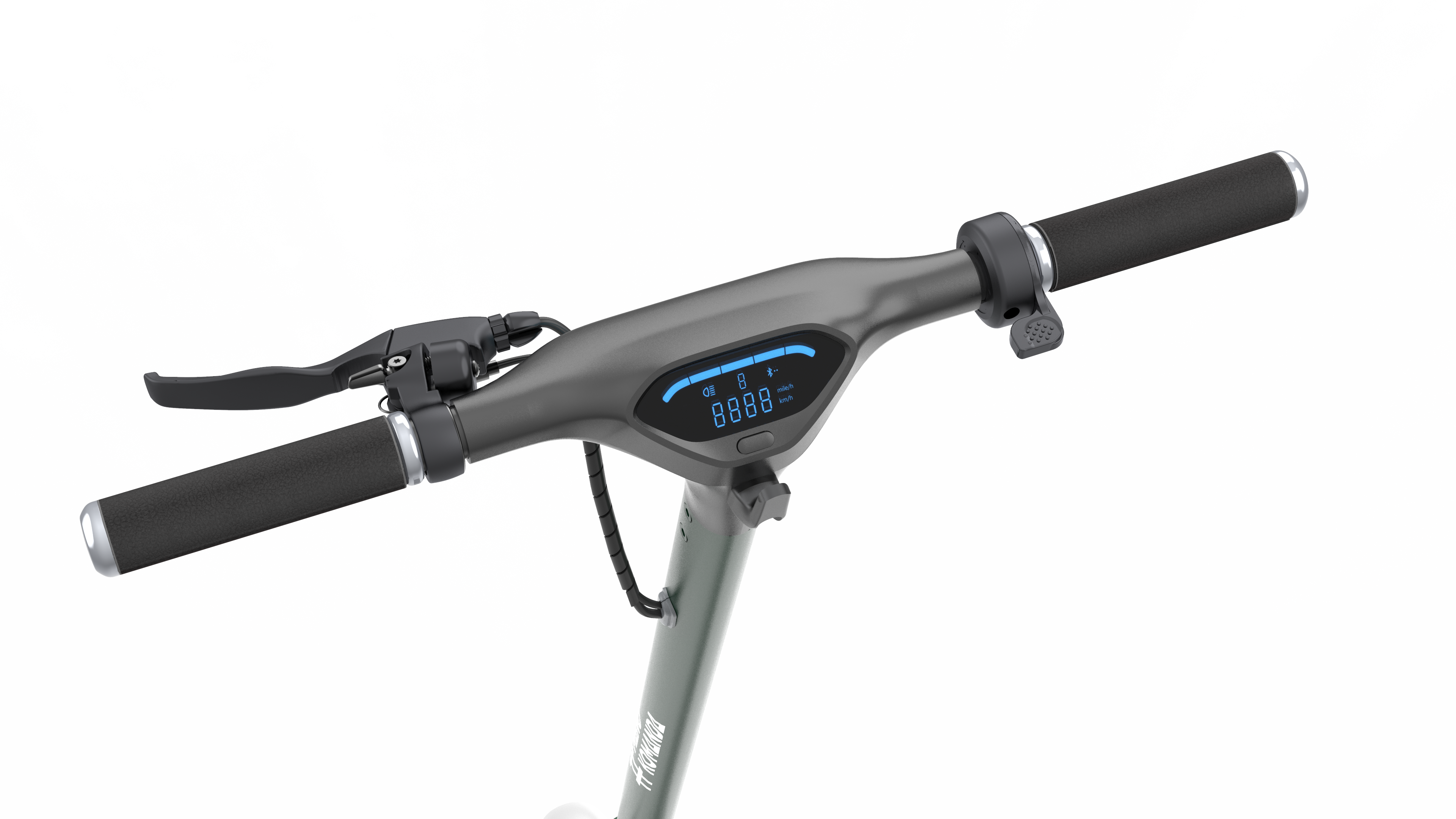 - LED ekranas su spidometru, baterijos indikatoriumi ir kt.