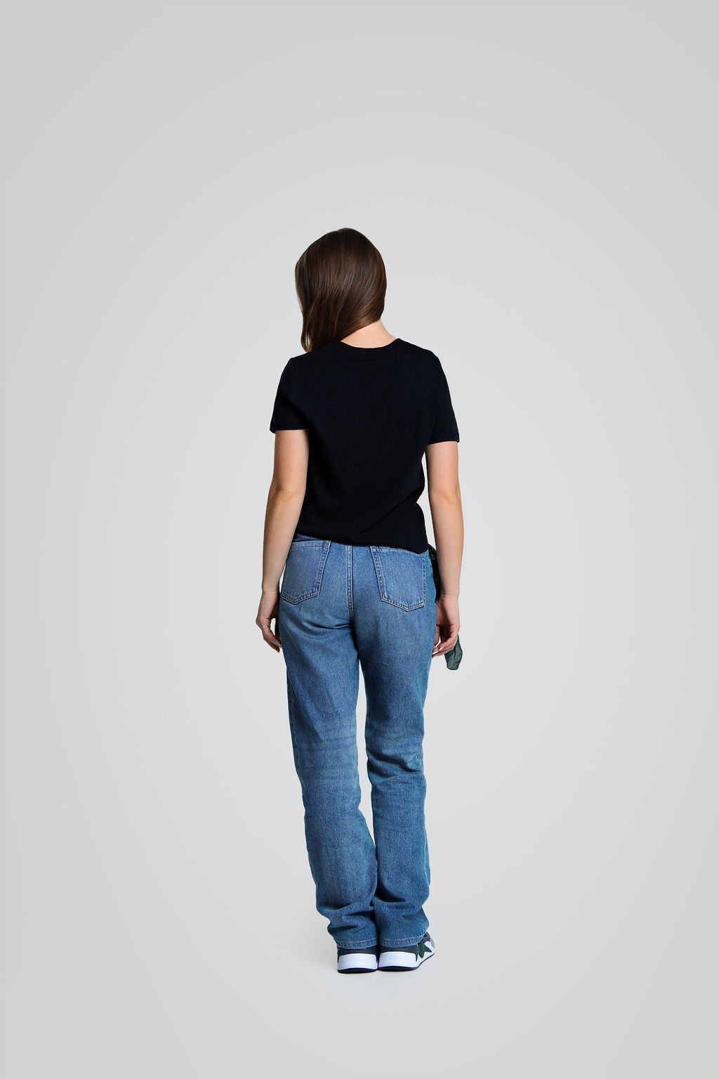 Trumpo kirpimo bei oversize stiliaus, tad marškinėliuose galima jaustis laisvai.