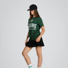Tamsiai žalios spalvos marškinėliai išsiskiria ikonišku „Žalgirio“ skydu bei per vidurį išdėstytu ryškiai baltu užrašu „Žalgiris – Kaunas“, kuris nepaliks abejonių, už kurią komandą plaka tavo širdis. Marškinėliai pagaminti iš medvilnės, todėl yra ne tik stilingi, bet ir patogūs – puikiai tiks tiek rungtynėms, tiek kasdieniam dėvėjimui. Tai daugiau nei drabužis – tai ištikimybės komandai simbolis, kuris privalo atsirasti kiekvieno tikro sirgaliaus spintoje.