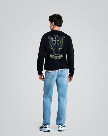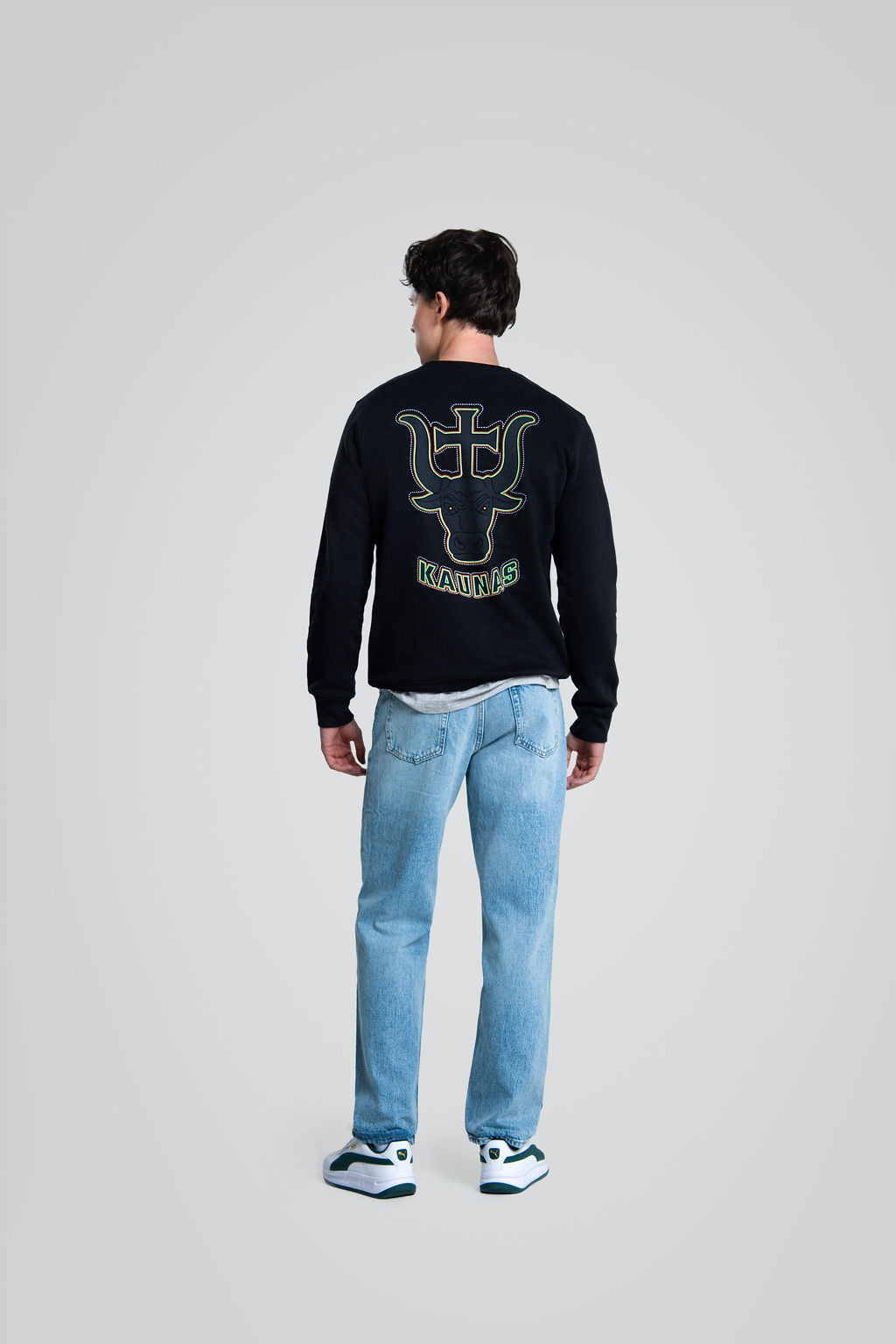Džemperis dekoruotas su mylimos komandos pavadinimu ir mylimo miesto simboliu - stumbru.