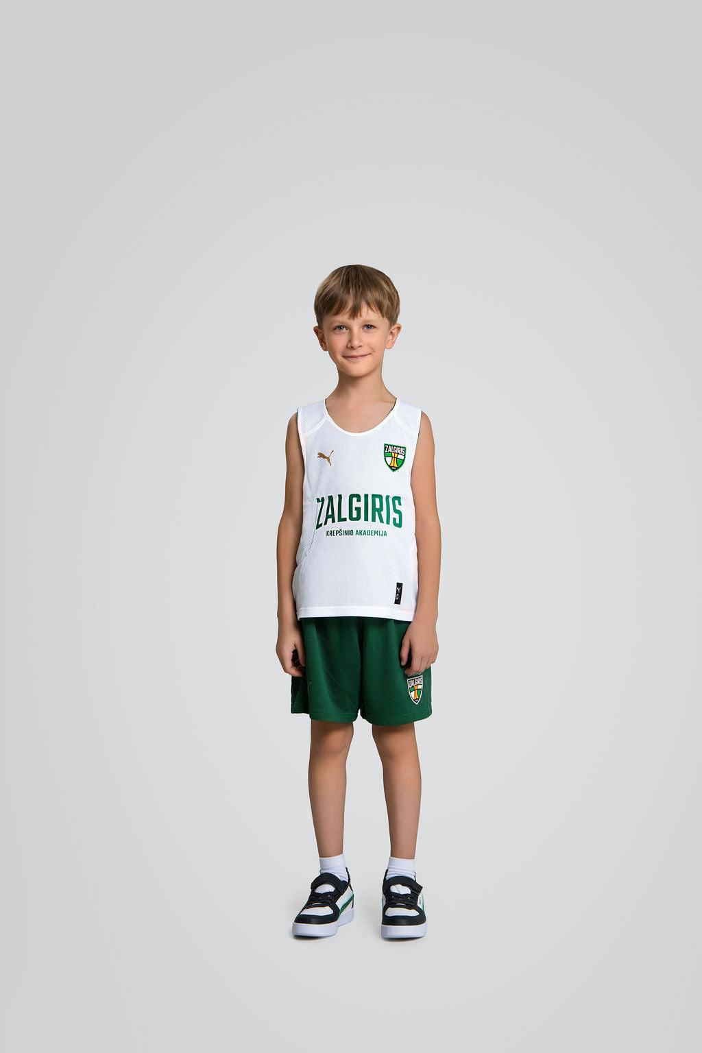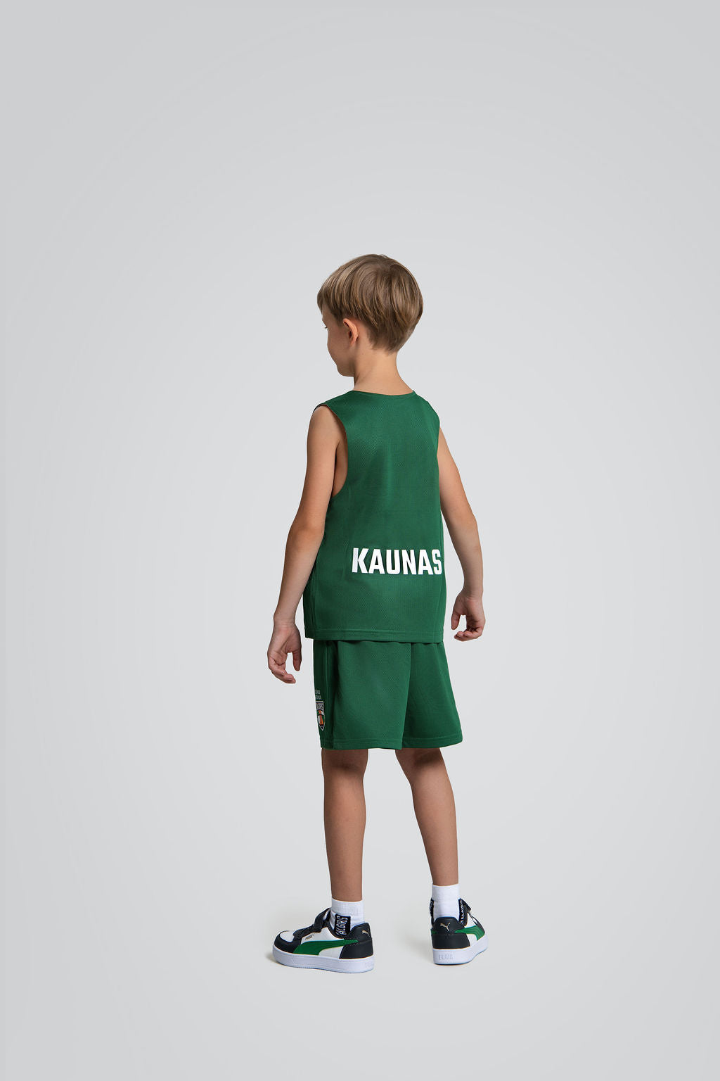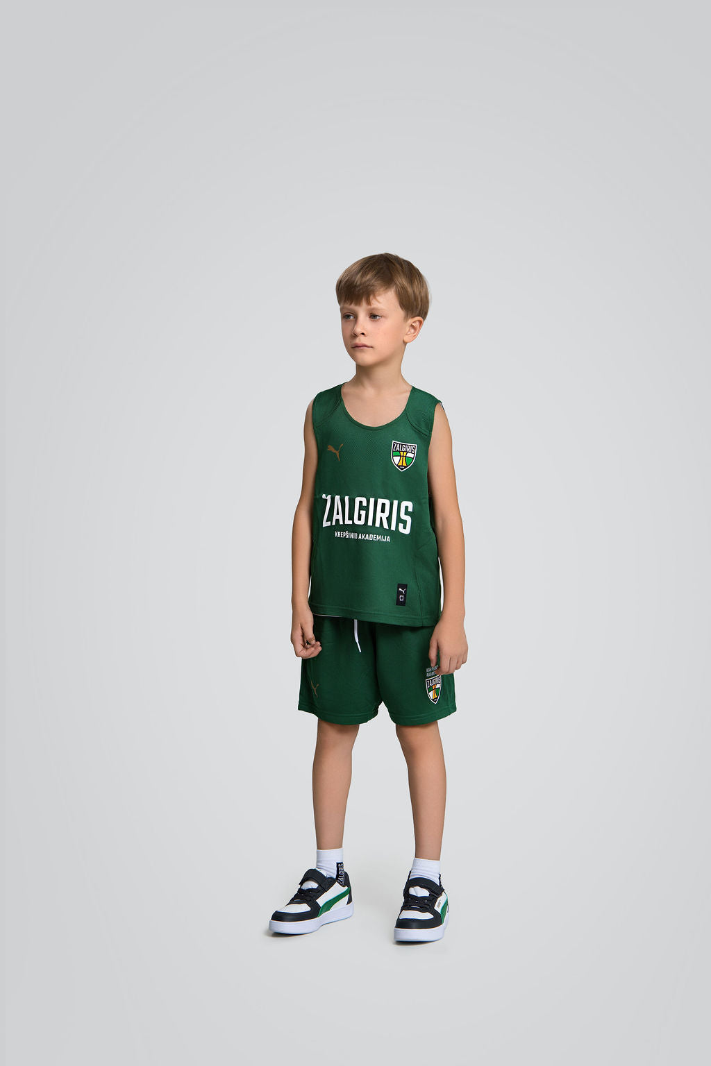 Žalgiris X Puma kolekcijos vaikiški žali žaidybiniai šortai. Lengva medžiaga užtikrina komfortą tiek sportuojant, tiek kasdien dėvint.