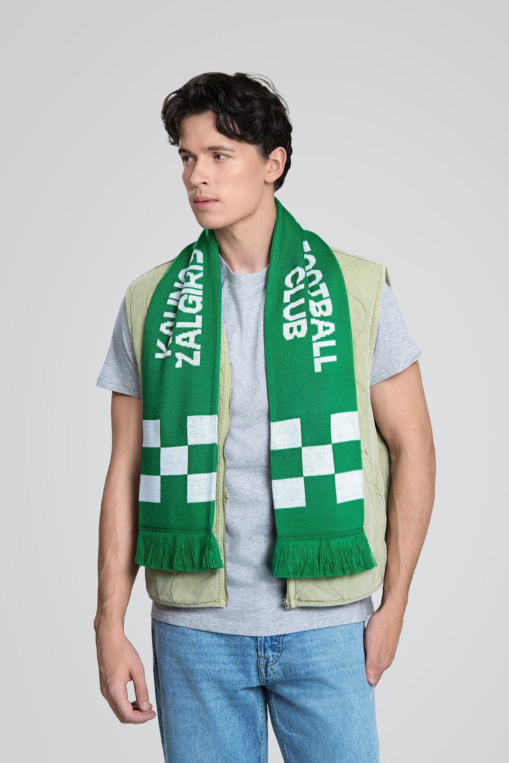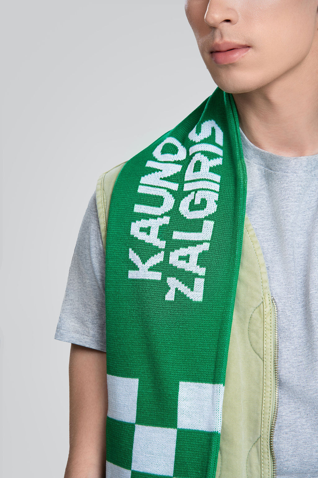 Šis megztas šalikas sudarytas iš dviejų mūsų komandą simbolizuojančių spalvų: žalios ir baltos. Pačiame drabužio priekyje išsiuvinėtas svarbiausias klubo akcentas - spalvotas logotipas. Šalikui išskirtinumo suteikia skirtingos detalės. Vienoje pusėje rasite „KAUNO ŽALGIRIS“, o kitoje „FOOTBALL CLUB“ užrašus. Šaliko galai išmarginti languotu raštu.
