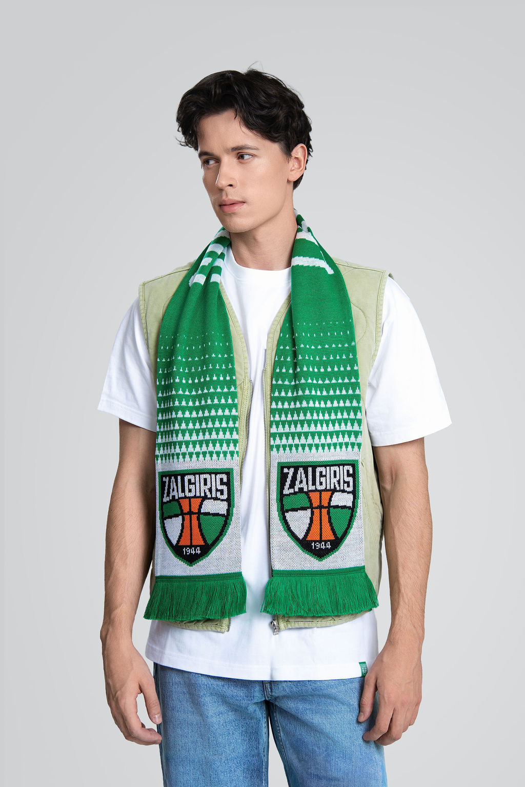 Šalikas yra žalios spalvos, numargintas mažais, baltais trikampiais. Taip pat jį puošia Žalgirio komandos logotipas.